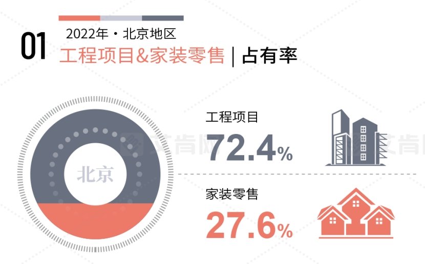 面对这样的不利局面,很多品牌只能适时调整销售方向和计划,通过别的业务来弥补地产配套的下滑,其中,家装零售就是最好的方向。根据艾肯网统计,2022年度,北京家装零售市场的占有率为27.6%,同比有所提升。虽然家装零售市场的占有率有所提高,但相比