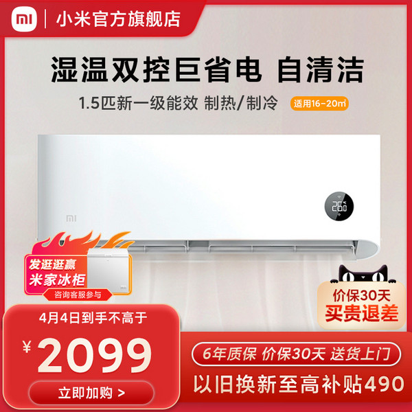 小米巨省电空调挂机冷暖两用1.5匹一级能效变频家用智能壁挂式2599元天猫精选去购买