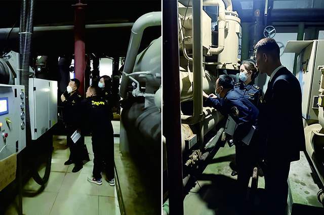 特种设备安全监察人员分组现场查看了吉源国际酒店、万科生活广场、苏宁易购超市、华东购物广场的中央空调系统附属压力容器,通过查看蒸发器、冷凝器、油分离器等组成部件的铭牌,对照出厂资料,重点检查是否按期进行检验,并取得检验合格报告;是否办理使用登记证;是否按规范设置管理机构,特种设备安全管理制度和岗位责任制度是否健全;是否按照规范配备特种设备安全管理人员。发放了宣传资料,现场讲解了中央空调系统附属压力容器特征、结构,如何分辨、如何对这类压力容器进行安全管理等;向使用单位宣贯了相关法规等。