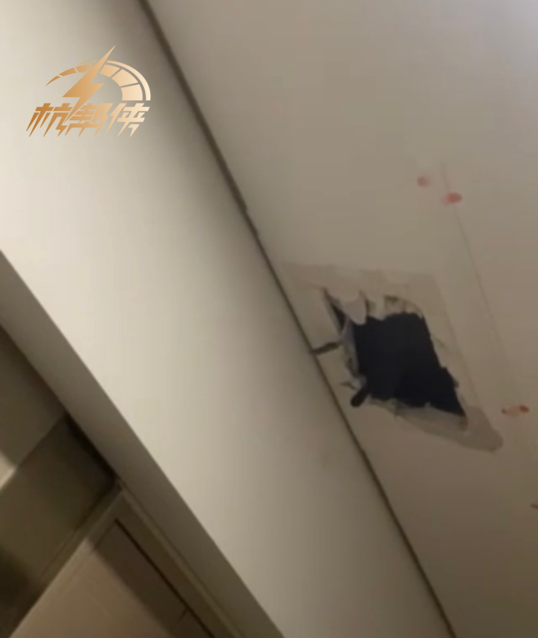 吴先生说:“有人我家门口的走廊顶开了个洞,把我家的空调入户铜管剪掉之后,又把洞口封了起来,可以看到修补的痕迹。后续,去找了物业,但却被告知并不清楚此事。”