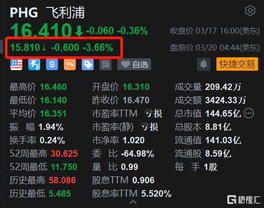 格隆汇3月20日丨飞利浦(PHG.US)盘前跌3.66%,报15.81美元。近日该股出现诸多利空情绪,格力电器“专利战”胜飞利浦空调,家电行业竞争层次升级;截止3月15日,在家电领域的调查中,飞利浦位居被投诉最多的品牌之一;日前,飞利浦高层又突发变动,任命Julia Strandberg为其互联关护业务部门的首席业务负责人,为应对此前的召回事件。